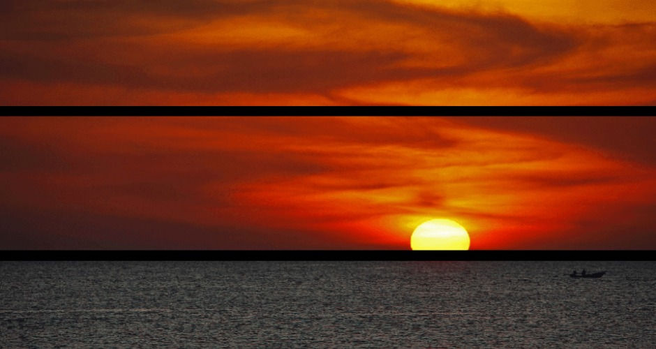 Divide la fotografía con dos líneas imaginarias horizontales que dividen la imagen en tres partes iguales, y donde colocamos el horizonte de manera que coincida con una de estas líneas.